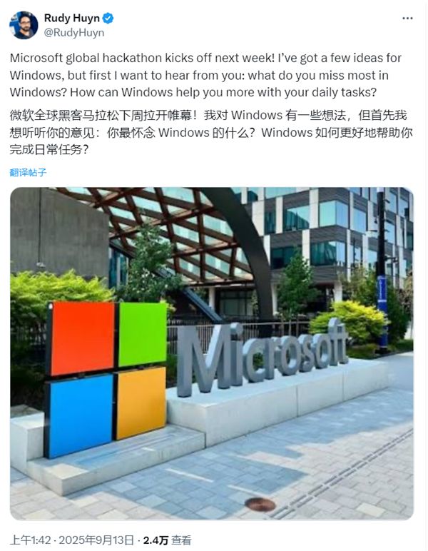 根据Kuai技术的说法,9月19日,Microsoft Windows和Microsoft Store Architect的合伙人Rudy Huyn要求用户在社交平台上提供反馈,并计划添加Windows 11上可用的长期功能。RudyHuyn说。RudyHuyn说:“ Microsoft Hackathon即将在下一周开始填写您的意见。第三党的客户也是Windows开发领域的大名字。 Huyn。文件资源管理器显示文件夹的大小,鲁迪·惠恩(Rudy Huyn)回答:“这是一个很棒的评论。”因此,将来可以将此功能添加到Windows 11中。也有许多用户希望更好地控制背景应用程序。另一个常见的要求是,电池寿命更长,类似于MacBook的电池寿命。用户还想将一些功能添加到Windows 11:自动主题传输(基于时间,位置或焦点模式)。此功能实际上将到达Powertoys的Windows,如果有本地集成,那就更好了。单击单击菜单(避免单击“显示更多选项”以允许用户设置默认值)。一些用户希望Microsoft解决动画问题,因为将Windows的用户界面移至某些计算机会延迟。